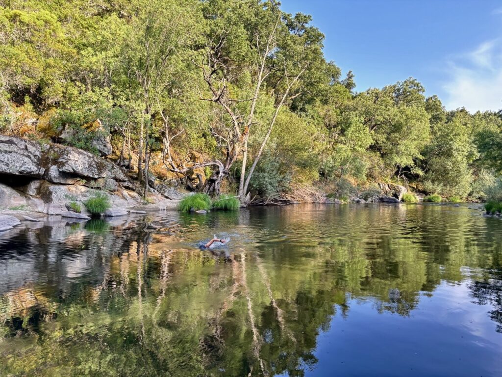 Y, cuando acabemos de pedalear y volvamos a Jarandilla, nos podemos dar un baño en la garganta de Jaranda para relajar las piernas, antes de sentarnos a disfrutar de un queso al pimentón, acompañado de mermelada de higos, pan crujiente y cerveza bien fría.